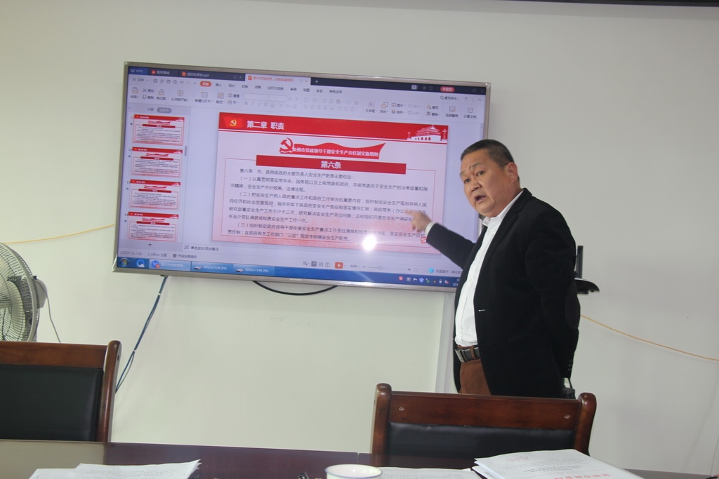 会议传达学习了《福建省人民政府<全省安全生产工作暨省政府第一季度防范重特大生产安全事故视频会议纪要>》、《李德金副省长在全省房屋安全隐患排查整治专项行动动员部署视频会上的讲话》、《南安市森林防火指挥部关于切实做好2019年清明节期间森林防火工作的通知》等文件精神。同时,场长陈远乐采用PPT深入解读《泉州市党政领导干部安全生产责任制实施细则》。
